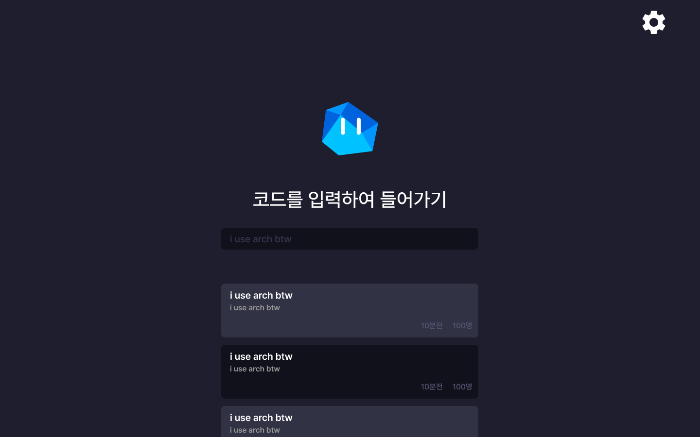 코드를 입력하여 들어가기